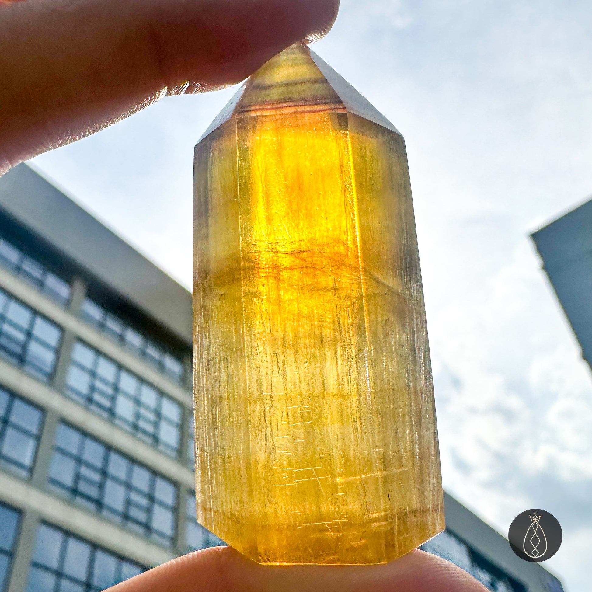 Natural Citrine Tower, measuring approximately 5–6cm / 1.96–2.36 inches, is hand-carved and polished to highlight its warm golden hue and natural clarity. Each tower carries unique internal textures and light patterns formed by nature over thousands of years, making every piece one of a kind.