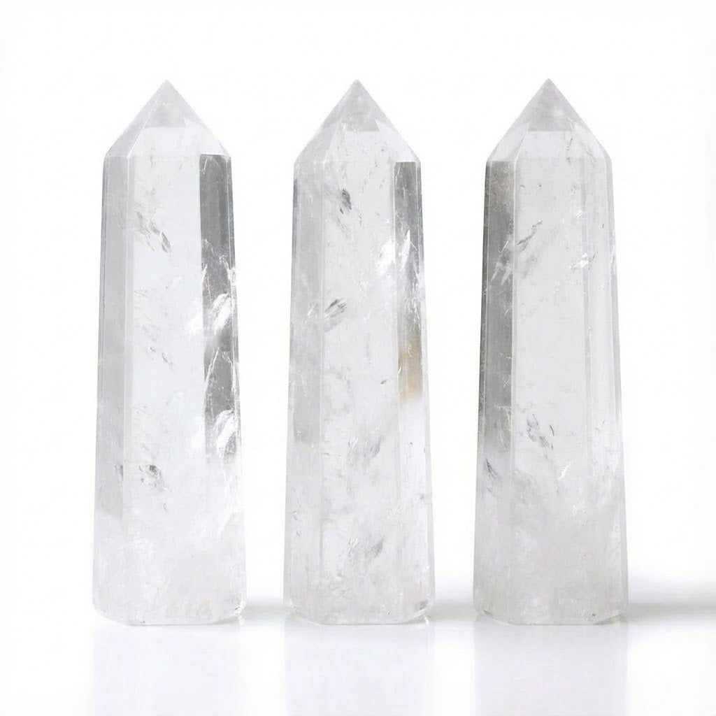This elegant natural clear quartz single point measures approximately 9–11cm (3.54–4.33 inches) and is carefully hand-carved from genuine clear quartz. Featuring a classic pointed tower shape, each piece displays natural transparency, internal textures, and subtle inclusions that make every crystal visually unique.