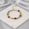 Inspired by radiant candy hues and finished with lustrous 14K gold plating, it catches the light—and attention—wherever you go. The playful yet elegant design adjusts to fit most wrists.