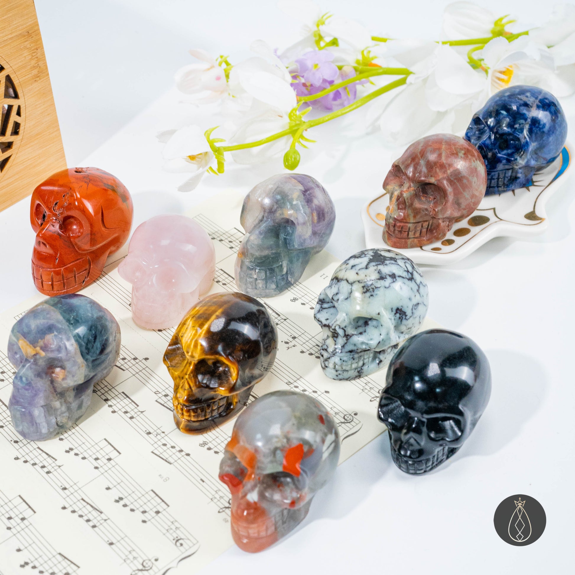 Crystal skulls are symbolic of wisdom, transformation, and protection. They are often used for energy work, grounding, meditation, or simply as charming spiritual décor. Each stone type also carries its own healing vibration.
