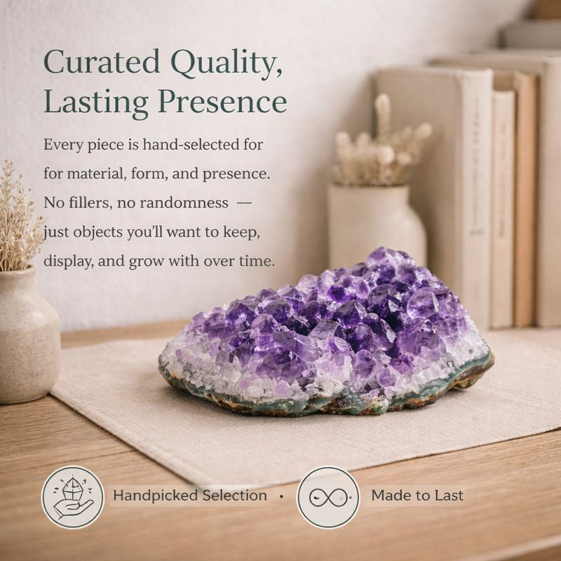 This box felt incredibly thoughtful from the moment I opened it. The amethyst piece is stunning and looks beautiful on my shelf. Everything inside feels intentional and high quality — not random at all.
