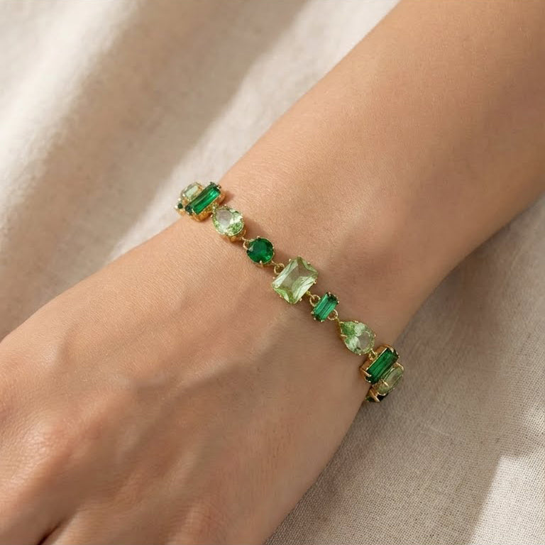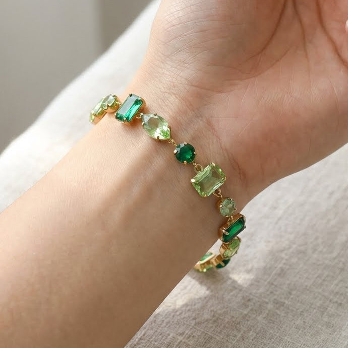 Inspired by radiant candy hues and finished with lustrous 14K gold plating, it catches the light—and attention—wherever you go. The playful yet elegant design adjusts to fit most wrists.