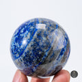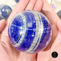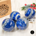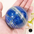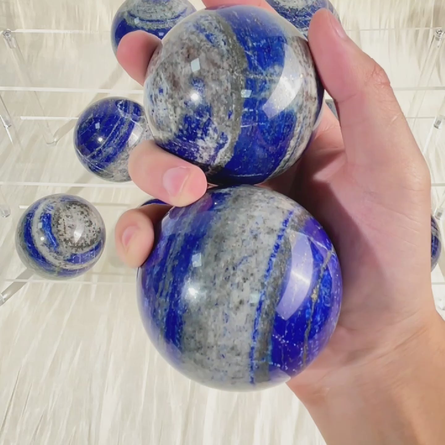 Lapis Lazuli spheres, measuring 40–70mm (1.57–2.75 inches) in diameter, are beautifully hand-polished from natural lapis lazuli. Each sphere showcases deep royal blue tones with shimmering golden pyrite specks and natural white calcite patterns, making every piece an elegant and powerful addition to your crystal collection.