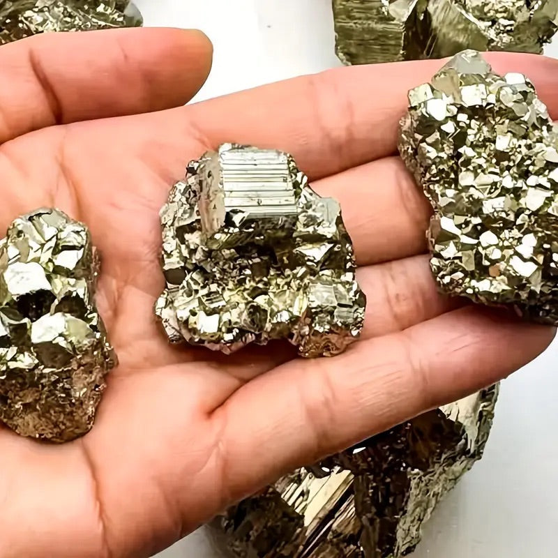 Natural Pyrite Raw Stones (100g–1kg) feature the brilliant metallic luster and cubic crystal structure that pyrite is famous for. Known as Fool’s Gold, each piece displays striking gold-bronze tones with natural texture and rugged formation — perfect for collectors, energy workers, and home décor lovers.
