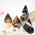 Sardonyx Agate Teardrop measures approximately 7–10cm (2.75–3.93 inches) and is hand-carved from genuine natural sardonyx agate. Each piece displays stunning flowing bands of red, brown, orange, and cream, and some pieces may naturally include small geodes or crystal caverns, adding even more uniqueness and charm to the carving.