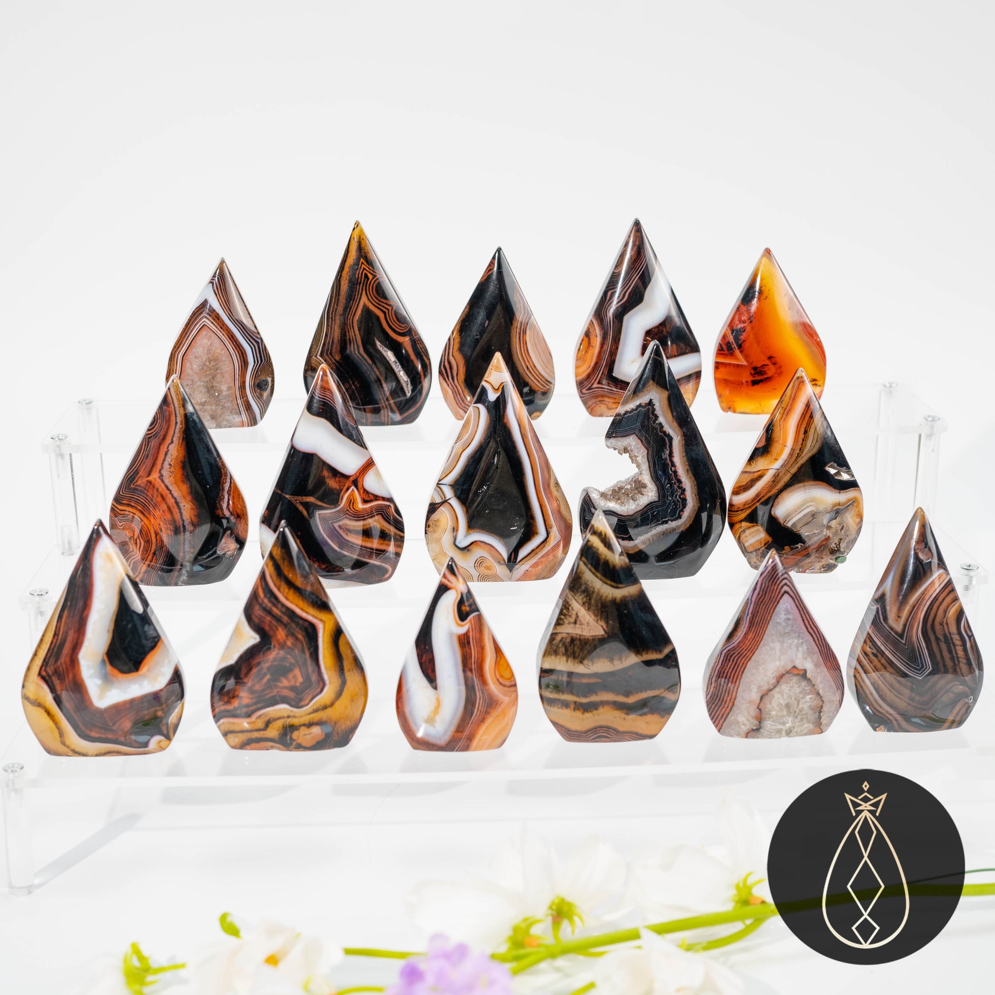 Every teardrop is polished to a smooth, glossy finish, highlighting the intricate layers formed over millions of years. Because it is made from natural stone, each piece varies slightly in color, banding, and possible geode openings, making every teardrop truly one of a kind.