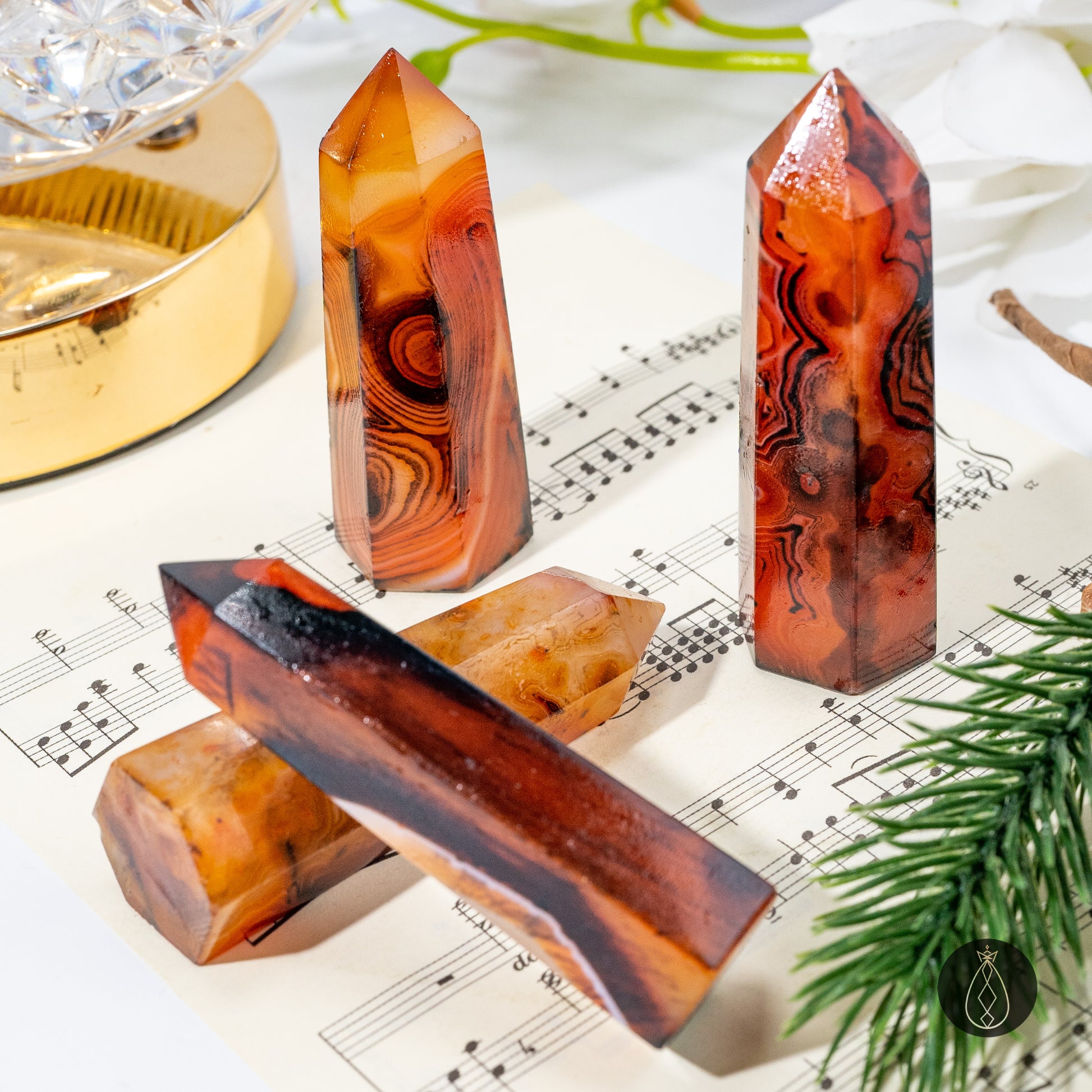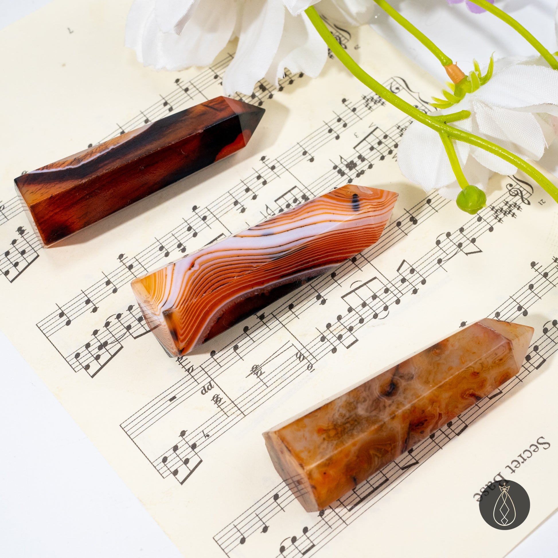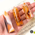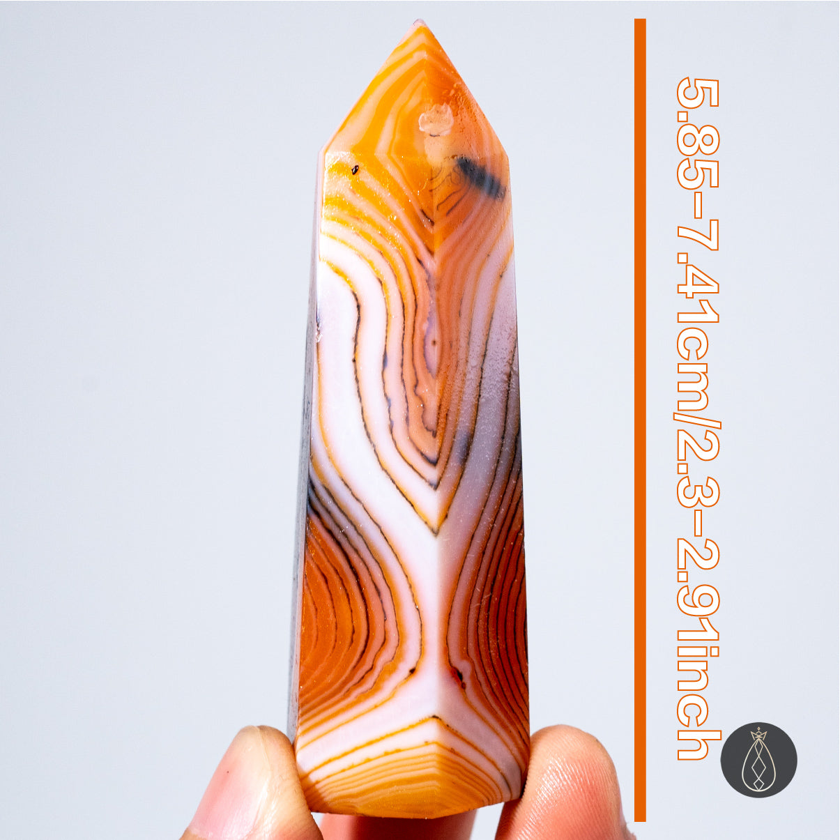 Sardonyx Tower measures approximately 5–6cm (1.96–2.36 inches) and is hand-carved from genuine natural sardonyx. Known for its striking red, orange, and white banding, each tower displays unique flowing patterns formed naturally over time. With a polished finish and vibrant layers, this piece makes a stunning addition to any crystal collection or home décor setup.