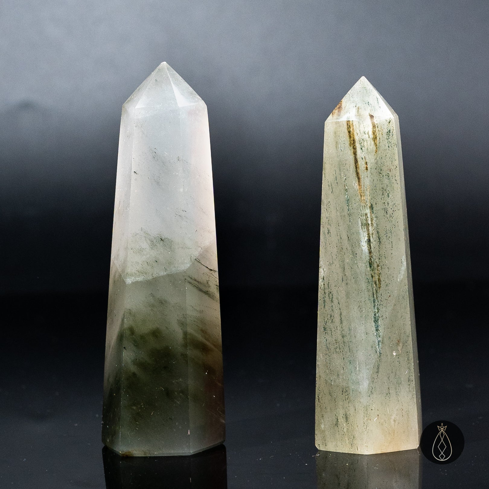 Phantom Quartz Tower measures approximately 7–9cm (2.75–3.54 inches) and is hand-carved from genuine natural quartz. Each tower displays breathtaking phantom layers inside the crystal — ghost-like outlines formed by earlier crystal growth — giving every piece incredible depth, dimension, and a story frozen in time.